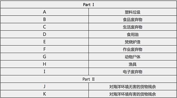 2. 垃圾记录簿修改为Part I和Part II两部分。第二部分主要记录货物残余(分为对海洋环境有害或无害)的排放。