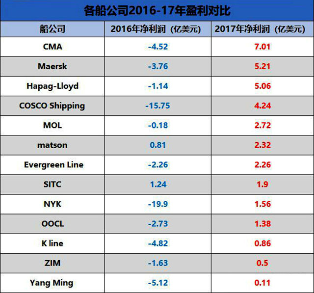 2017年航运市场回暖,各大集装箱班轮公司终于迎来了小阳春!