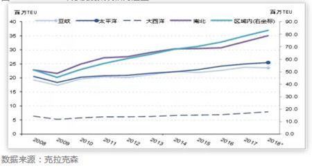 其二,超大型集装箱低调看直播官网_NBA极速体育直播_jrs西甲直播持续投放似乎在“逆势而为”(见图1)。东西干线货量增长明显放缓,与东西干线运力持续增长的趋势严重不符。2008年东西三大干线海运量全球占比还在50%,2018年这个比例仅有32%了。从2008-2018年货量变化来看,远东-西北欧航线货量增速微乎其微,而区域内与南北贸易增速明显。尽管当前区域内贸易(尤其是亚洲区域内货量)是作为东西干线的捎带范围,是一种货量补充,但是随着马士基等班轮巨头开始布局南北航线,并提升南北航线的班期密度;同时,山东海丰、泛亚航运等区域内直达或品牌航线服务不断优化,未来远东-西北欧航线货量面临较大的分流压力,超大型集装箱低调看直播官网_NBA极速体育直播_jrs西甲直播可能面临转载率不足的困境。